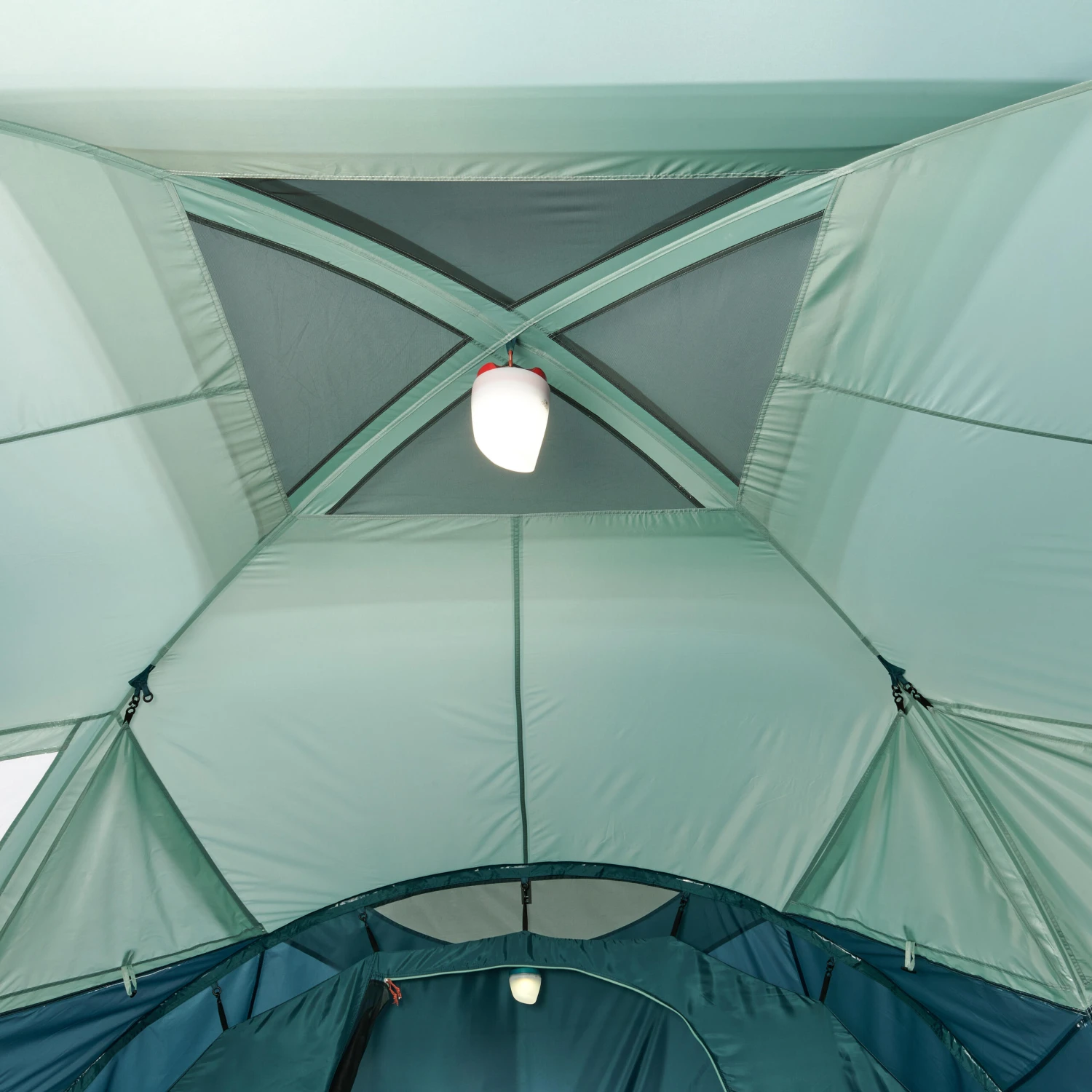 The ventilated flysheet on the living area airs the room and reduces condensation inside your tent. High ventilation hatches are also provided at the front and back of the tent, along with high mosquito nets on the door and at the back of the bedroom.
